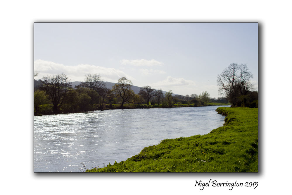 Along its grassy borders.