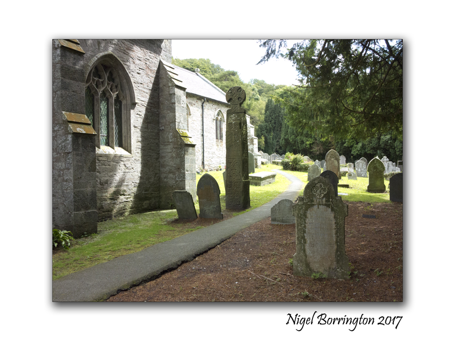 The church at Nevern is well worth a visit for the bleeding yew, but also because the church has some stone carvings which are over a thousand years old, such as the “Braided Cross Stone” (pictured here) which, like the bleeding yew, has been ascribed many meanings with two cords apparently being woven together to make the cross. There is an even older carving, the Maglocunus stone, which throws light on the version of ancient Celtic once used in these parts of Wales, called Ogham. This stone wasn’t preserved for itself standing vertically but was incorporated horizontally into the church as a windowsill.