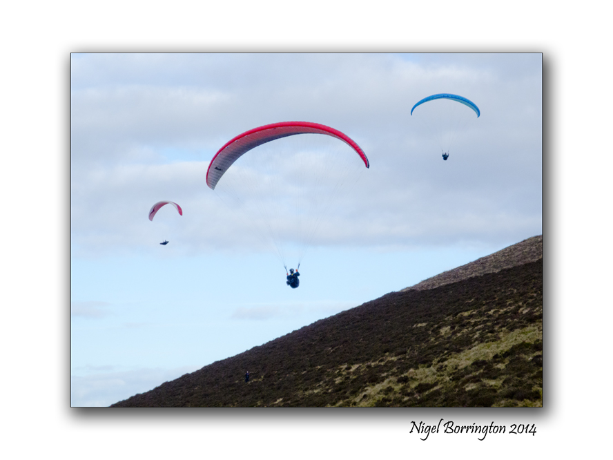 Late one evening recently, I came across three people walking up and I walked along side them for a while as the carried their equipment to the top and then all took off at the same time, it was just amazing to stand and watch them as they circled around above then disappeared off into the distance some miles away.